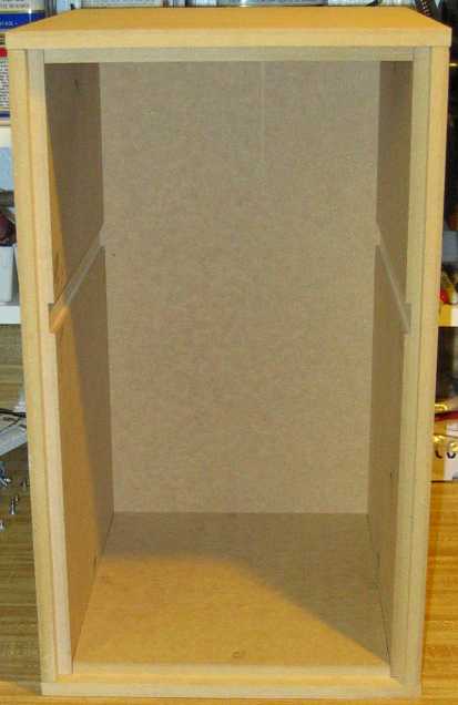 The basic box assembled without the brace was used during initial testing with an accelerometer. I'd planned to show how the before/after of bracing affects the box side resonances, but made a mistake by leaving the microphone calibration file in play when making the measurements without the brace. This was more out of curiosity rather than as an attempt to prove the effectiveness of bracing.