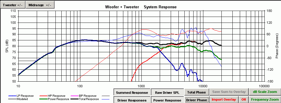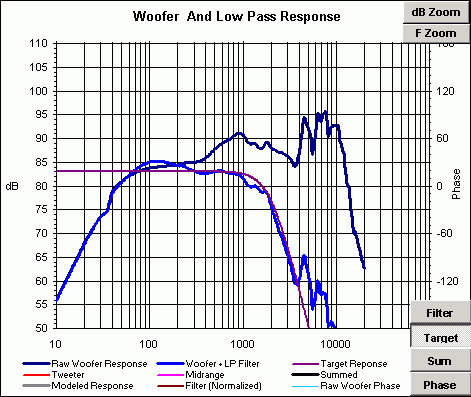 The individual driver sections are shown below. Each driver can be optimized separately and the sum viewed simultaneously with any indiidual driver crossover changes. It's really a very user-friendly setup. You can download the files to use in the PCD or many other packages for that matter. The individual raw driver files to use with the PCD project files are provided. Two versions are provided.