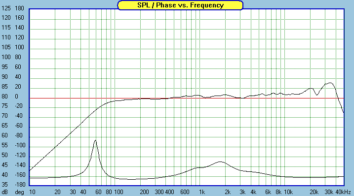 The response curve is respectably flat. Baffle step compensation is about 4dB which should be a good match for most rooms. The tonal balance is slightly tilted up in the top two octaves, which compensates for the XT25's slightly increased off axis rolloff when compared to other tweeters. Off axis plots will show this in more detail later.