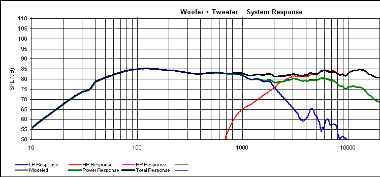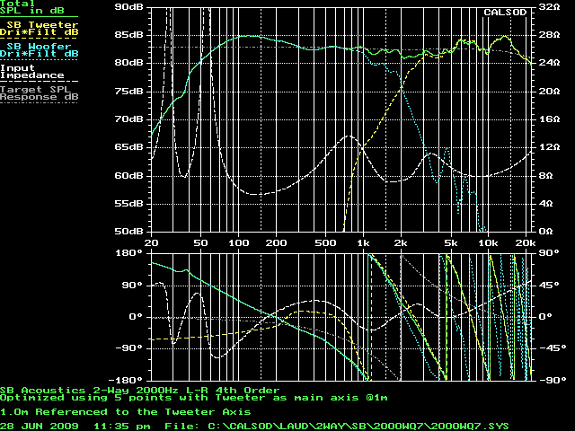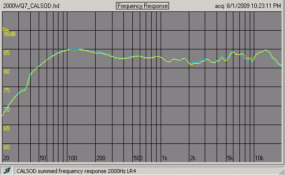 First let's look at the CALSOD results since this is where most of the crossover design was done. This is close to a standard Linkwitz-Riley 4th order acoustic crossover.