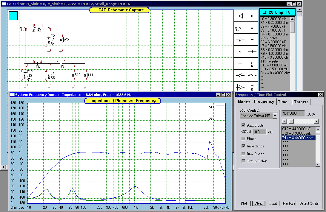There were several versions before I arrived at LR4 @ 2kHz. Of them, I came up with a couple LR2 crossovers at about 1.8kHz. One required either the woofer on top or a slanted baffle, and the other had a trellis delay network and a complexity of so many components that it was ridiculous. LR2 did sound good, and possibly a small bit better than LR4, but given the low crossover point requirements I believe the tweeter was straining under high output. All things considered, I think LR4 at 2Khz is the best choice for this combination. We get good power handling, simplicity and a good listening axis angle on a flat baffle. After busting my noggin on 2nd order attempts, I began to feel like metal drivers are simply meant to be 4th order.