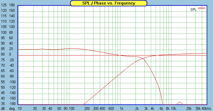 Now, with the L18 H1224's new higher breakup node, you can see in the distortion chart above that the 3rd order harmonic is pushed up to 2.5kHz. This is much more useful in a 2-way design. With the crossover placed at 2kHz, even the harmonic is several dB down, enough to not be noticed anymore. Now you can see why I've been so excited about this woofer.
