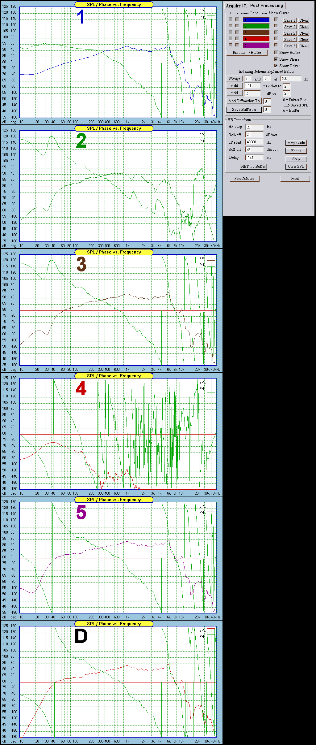In this example, I use all 5 slots to get the proper final curve of a vented woofer enclosure. These steps are not the definitive way of doing it, nor are they detailed. They may help steer you in the right direction however.