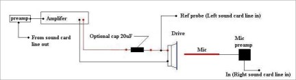 My SE setup is based on the hookups shown in the manual. There are three distinct hookup modes: calibrate, T/S measure and SPL measure.